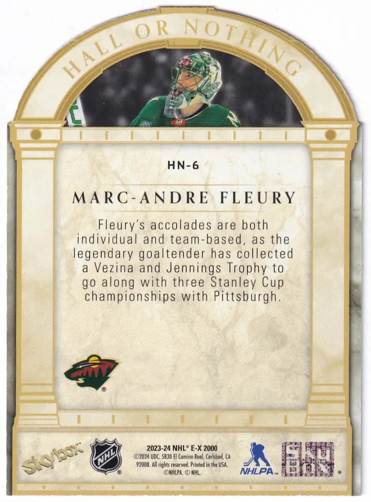 2023-24 E-X2000 Hall or Nothing #HN6 Marc-Andre Fleury Minnesota Wild