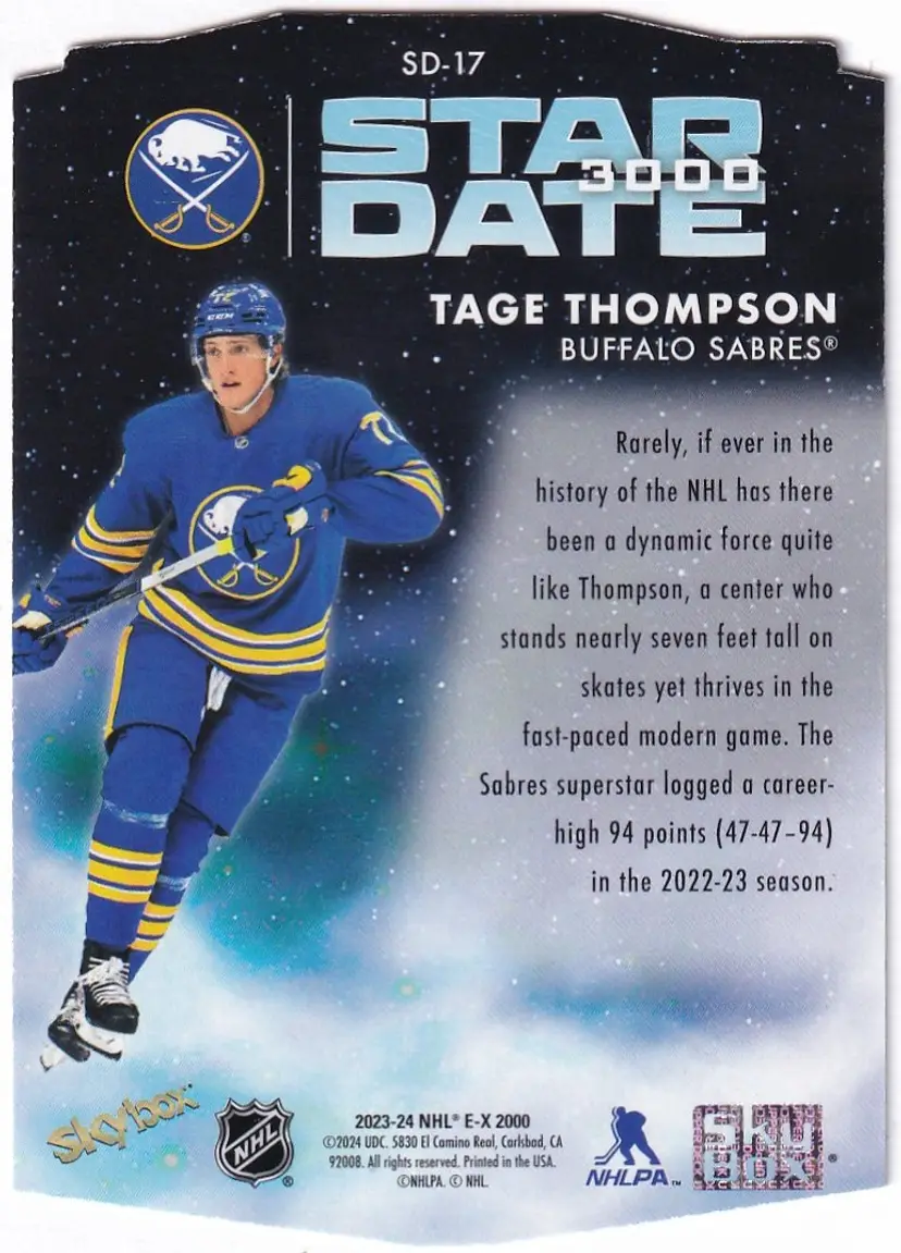 2023-24 E-X2000 Star Date 3000 #SD17 Tage Thompson Buffalo Sabres