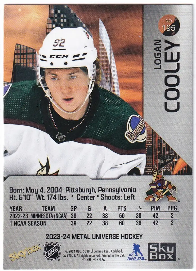 2023-24 Metal Universe #195 Logan Cooley RC Arizona Coyotes