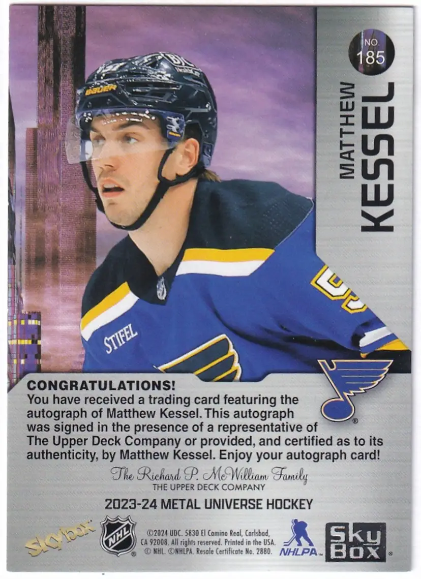 2023-24 Metal Universe Autographs Silver #185 Matthew Kessel St. Louis Blues Print Run - 399