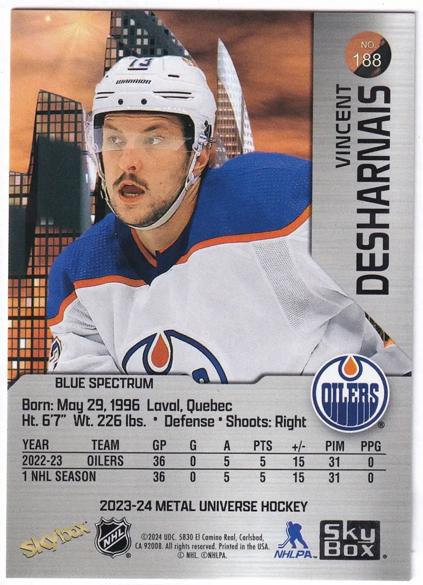2023-24 Metal Universe Blue Spectrum FX #188 Vincent Desharnais Edmonton Oilers