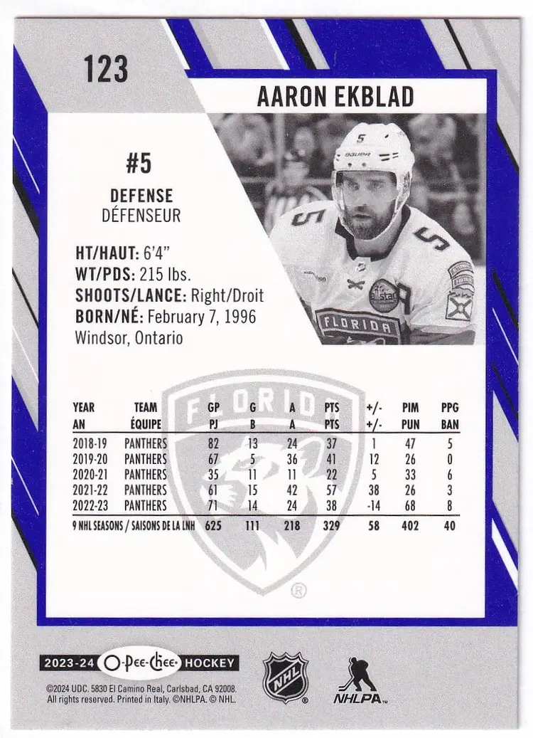 2023-24 O-Pee-Chee Blue #123 Aaron Ekblad Florida Panthers