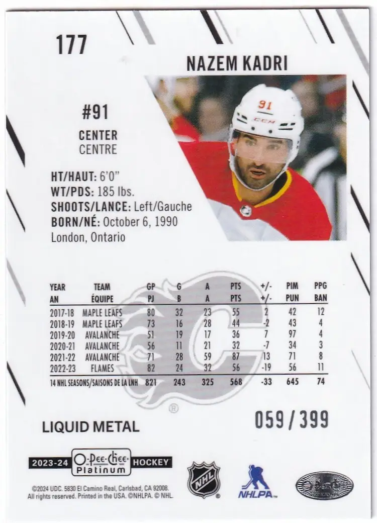 2023-24 O-Pee-Chee Platinum Liquid Metal #177 Nazem Kadri Calgary Flames Print Run - 399