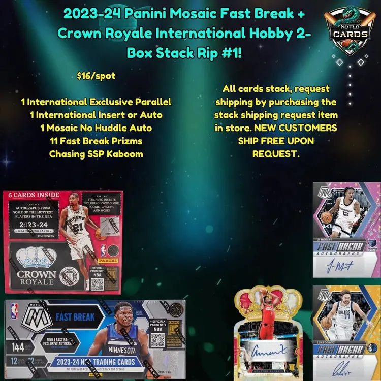 - All cards stack. - Request shipping by purchasing the stack shipping request item in store. - New customers ship free upon request.