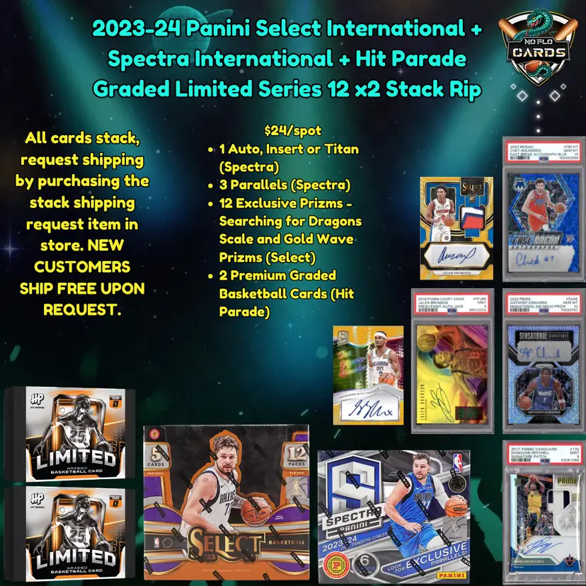 - All cards stack. - Request shipping by purchasing the stack shipping request item in store. - New customers ship free upon request.