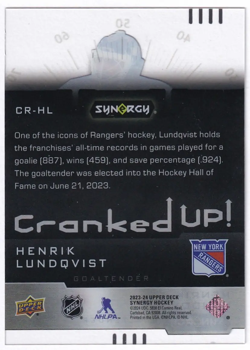 2023-24 Synergy Cranked Up #CRHL Henrik Lundqvist New York Rangers Print Run - 849