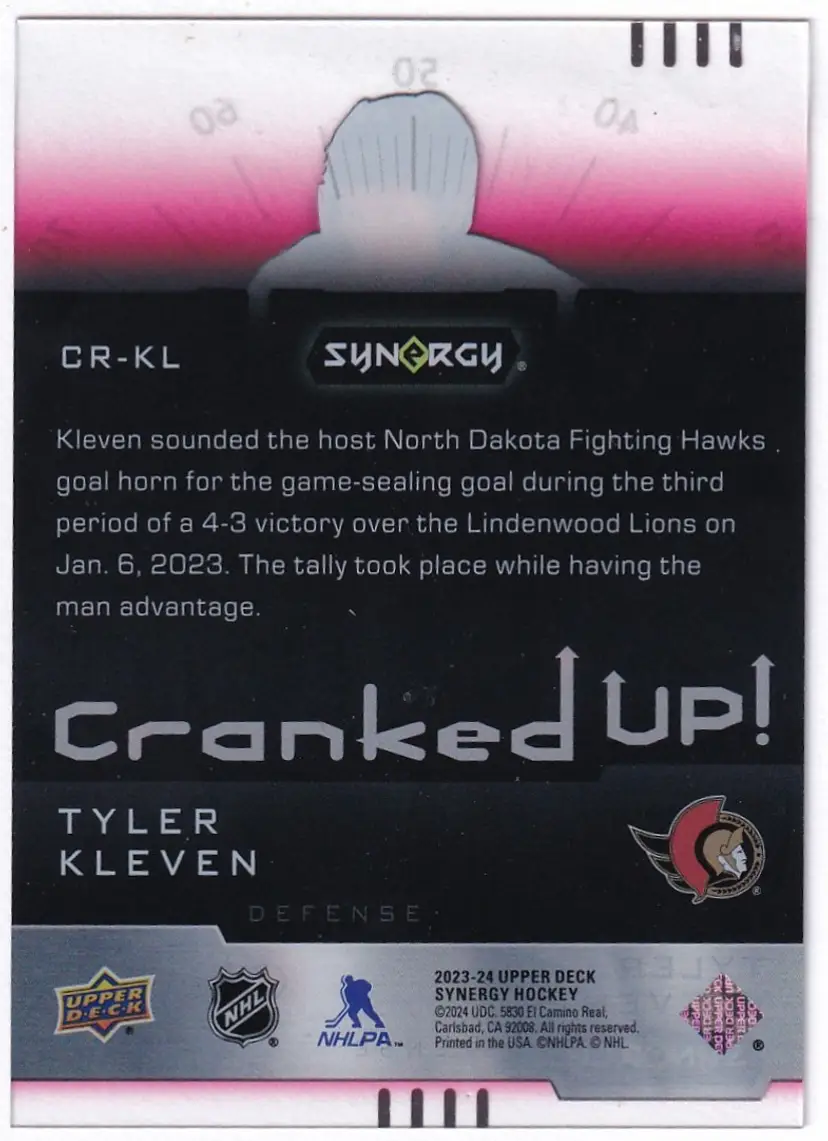 2023-24 Synergy Cranked Up Red #CRKL Tyler Kleven Ottawa Senators Print Run - 599
