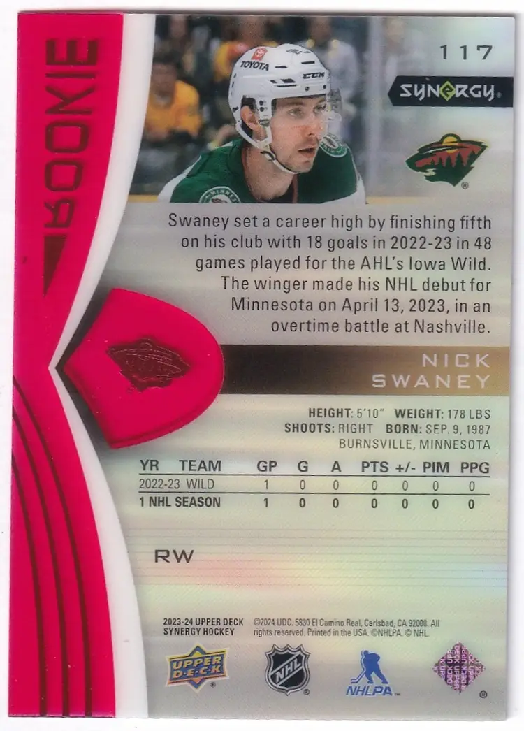 2023-24 Synergy Red #117 Nick Swaney Minnesota Wild