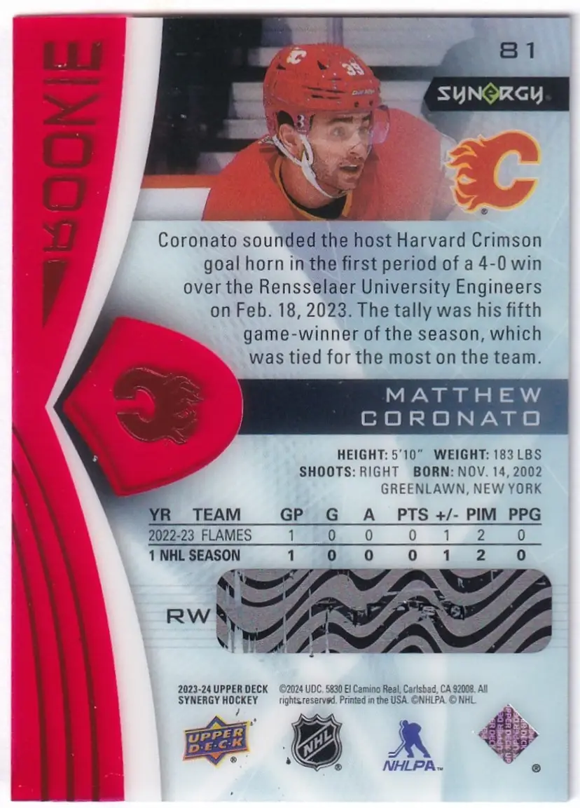 2023-24 Synergy Red Codes #81 Matthew Coronato Calgary Flames