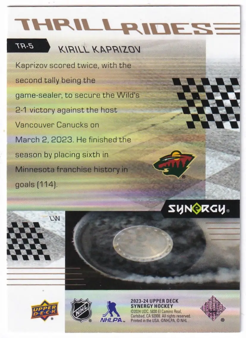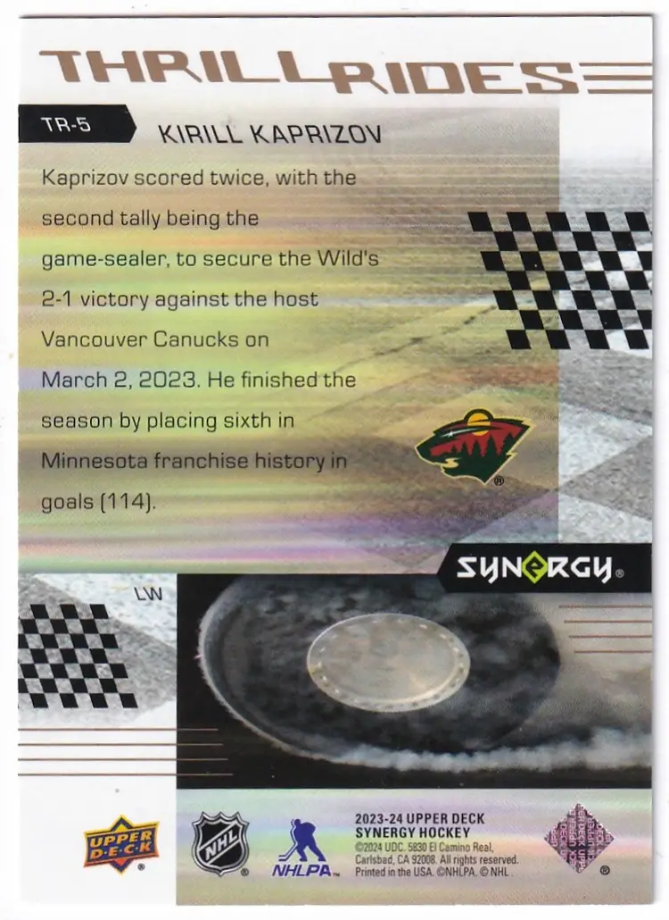 2023-24 Synergy Thrill Rides #TR5 Kirill Kaprizov Minnesota Wild