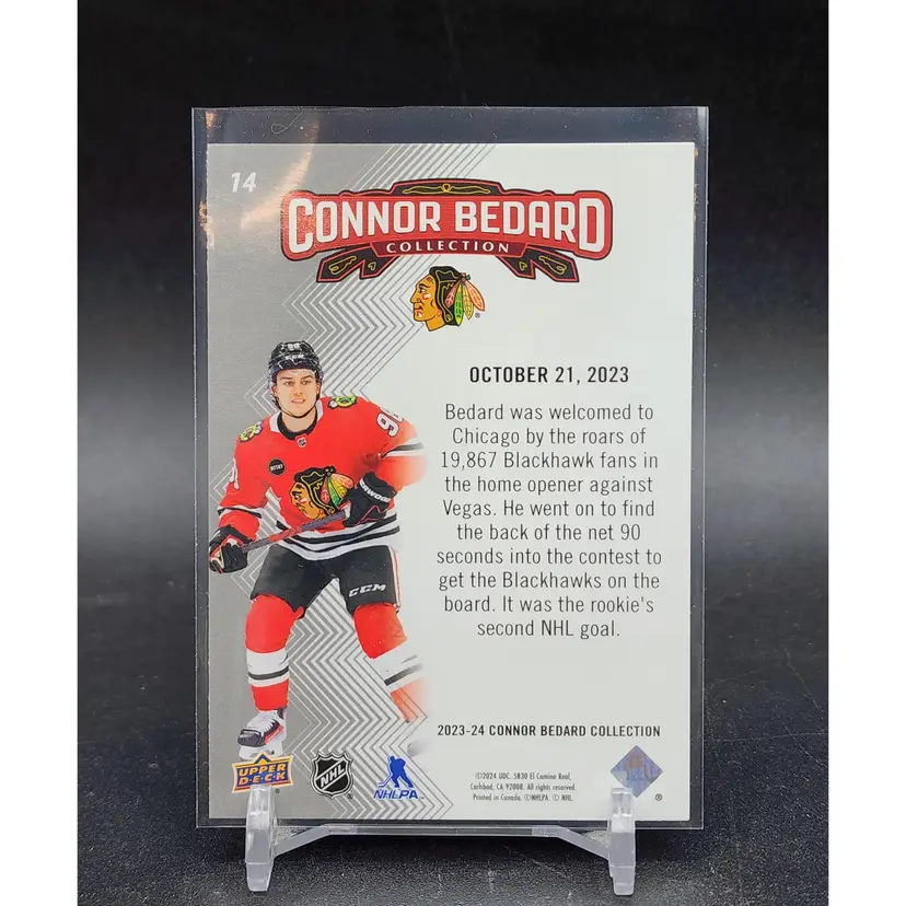 2023-24 UD Connor Bedard Collection Highlights #14 Shipped in a penny sleeve, top loader, team bag in a bubble mailer.