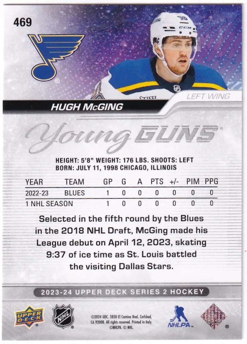 2023-24 Upper Deck #469 Hugh McGing YG RC St. Louis Blues