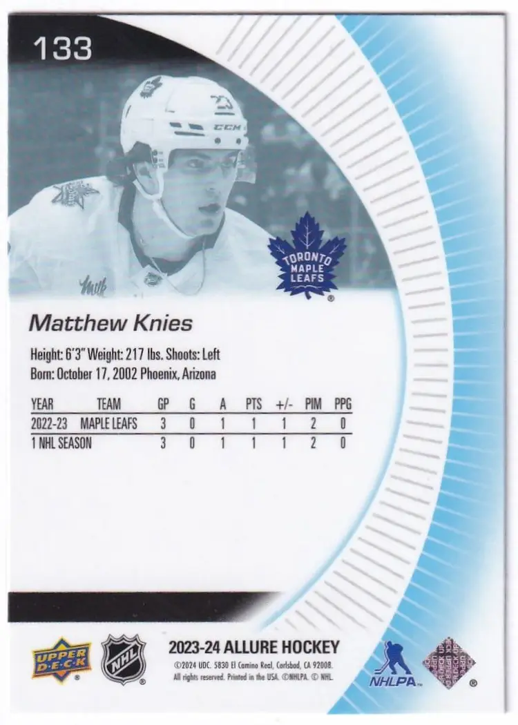 2023-24 Upper Deck Allure #133 Matthew Knies RC Toronto Maple Leafs