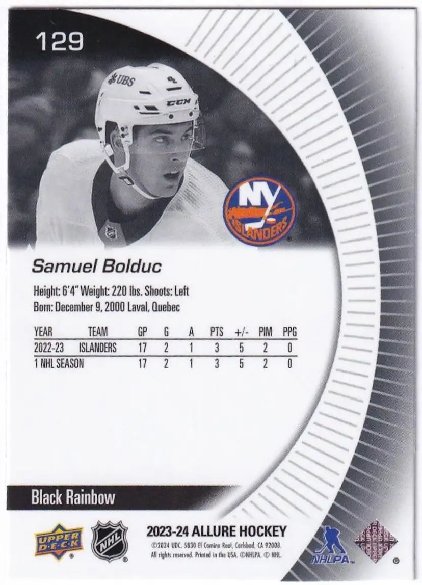 2023-24 Upper Deck Allure Black Rainbow #129 Samuel Bolduc New York Islanders