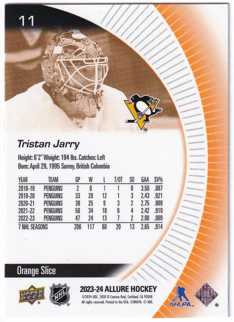 2023-24 Upper Deck Allure Orange Slice #11 Tristan Jarry Pittsburgh Penguins