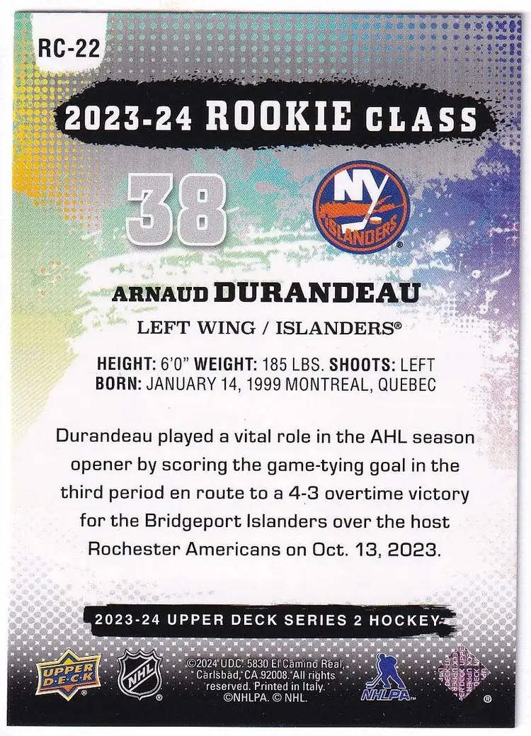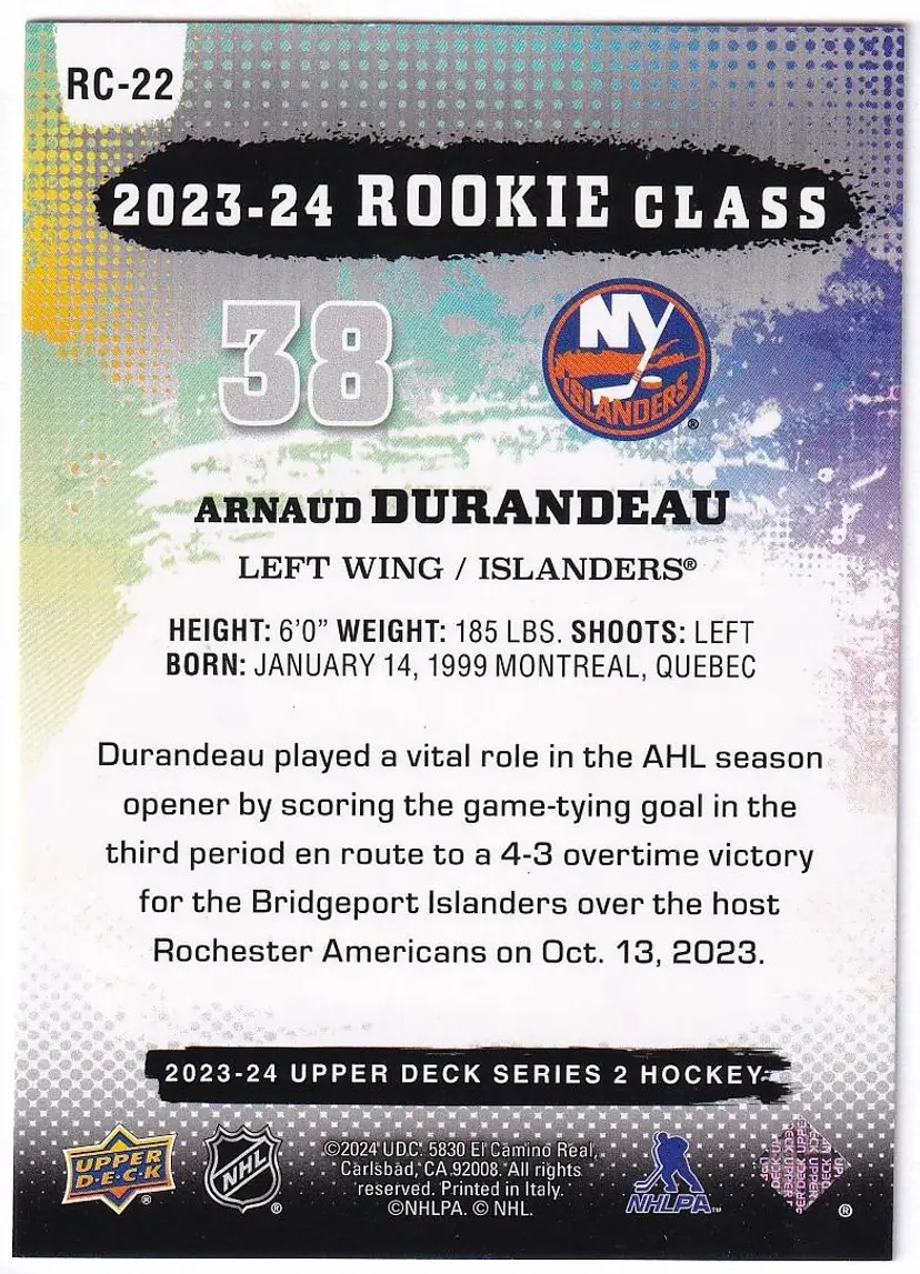 2023-24 Upper Deck Commemorative Class #RC22 Arnaud Durandeau New York Islanders