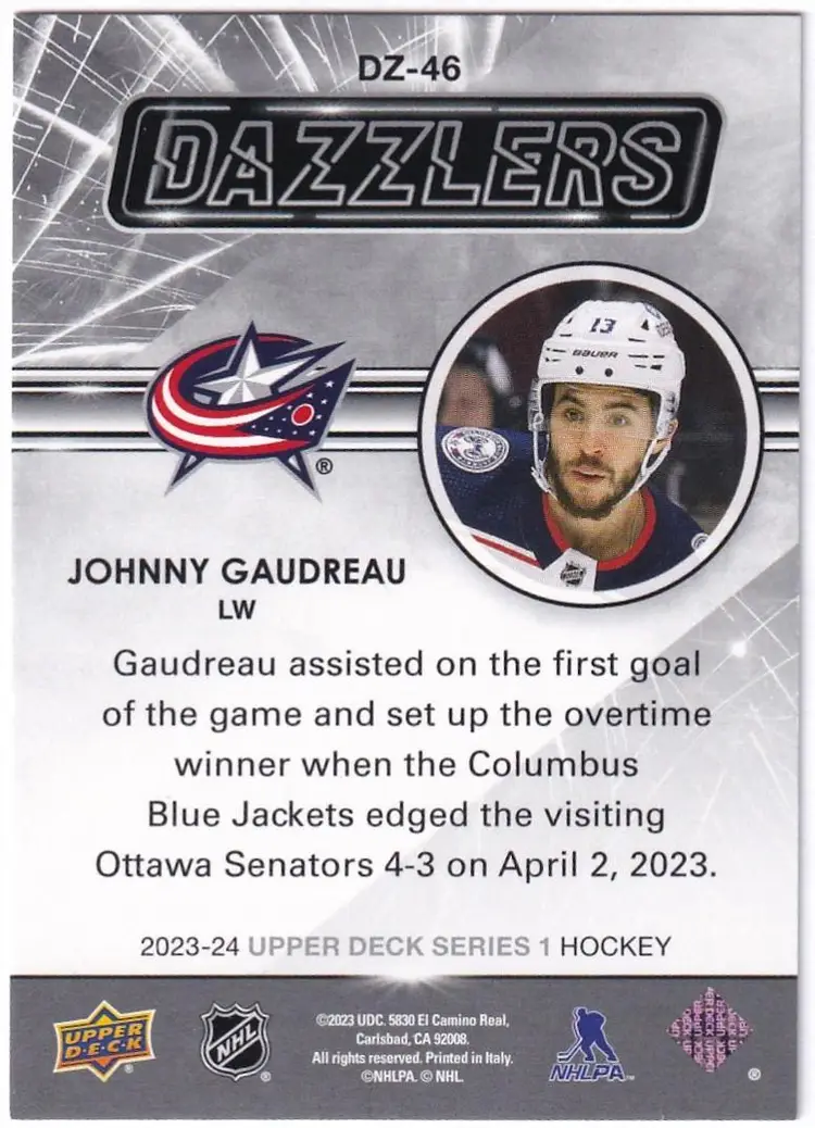 2023-24 Upper Deck Dazzlers Blue #DZ46 Johnny Gaudreau Columbus Blue Jackets