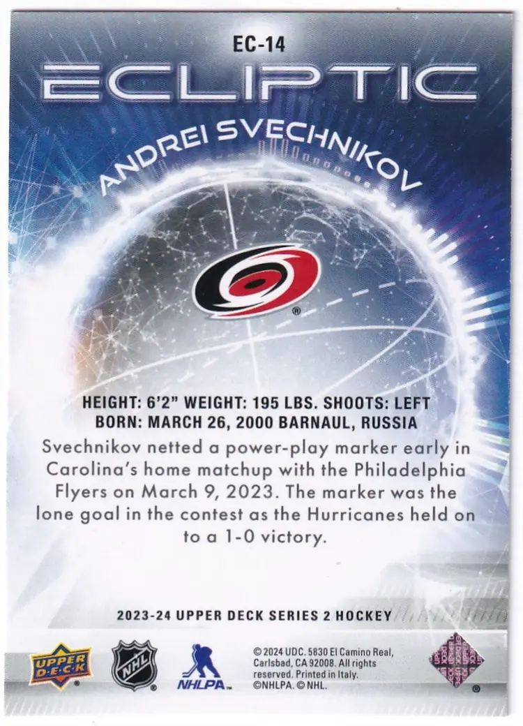 2023-24 Upper Deck Ecliptic Sparkle #EC14 Andrei Svechnikov Carolina Hurricanes
