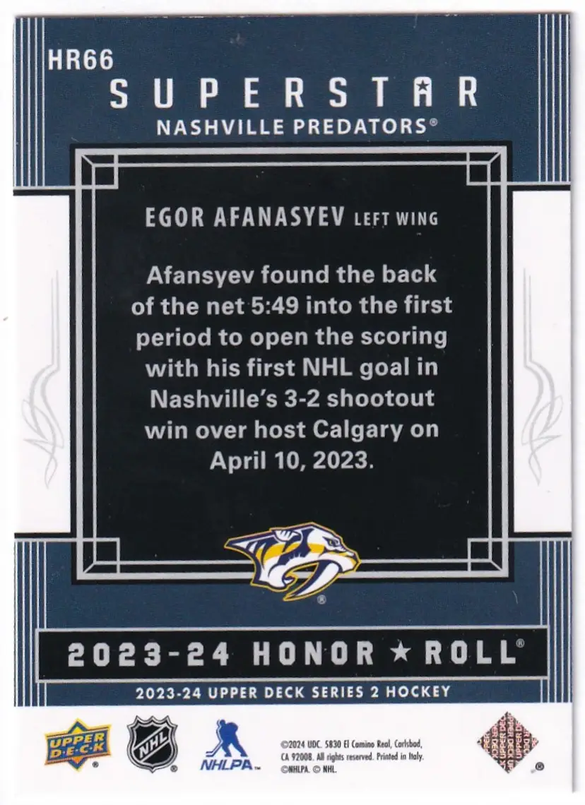 2023-24 Upper Deck Honor Roll #HR66 Egor Afanasyev Nashville Predators
