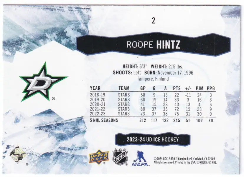 2023-24 Upper Deck Ice Green #2 Roope Hintz Dallas Stars