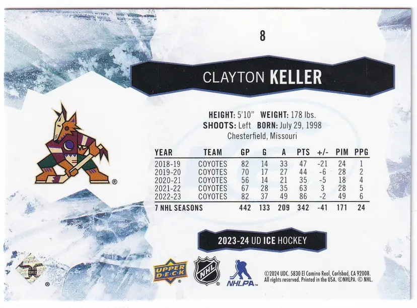 2023-24 Upper Deck Ice Green #8 Clayton Keller Arizona Coyotes