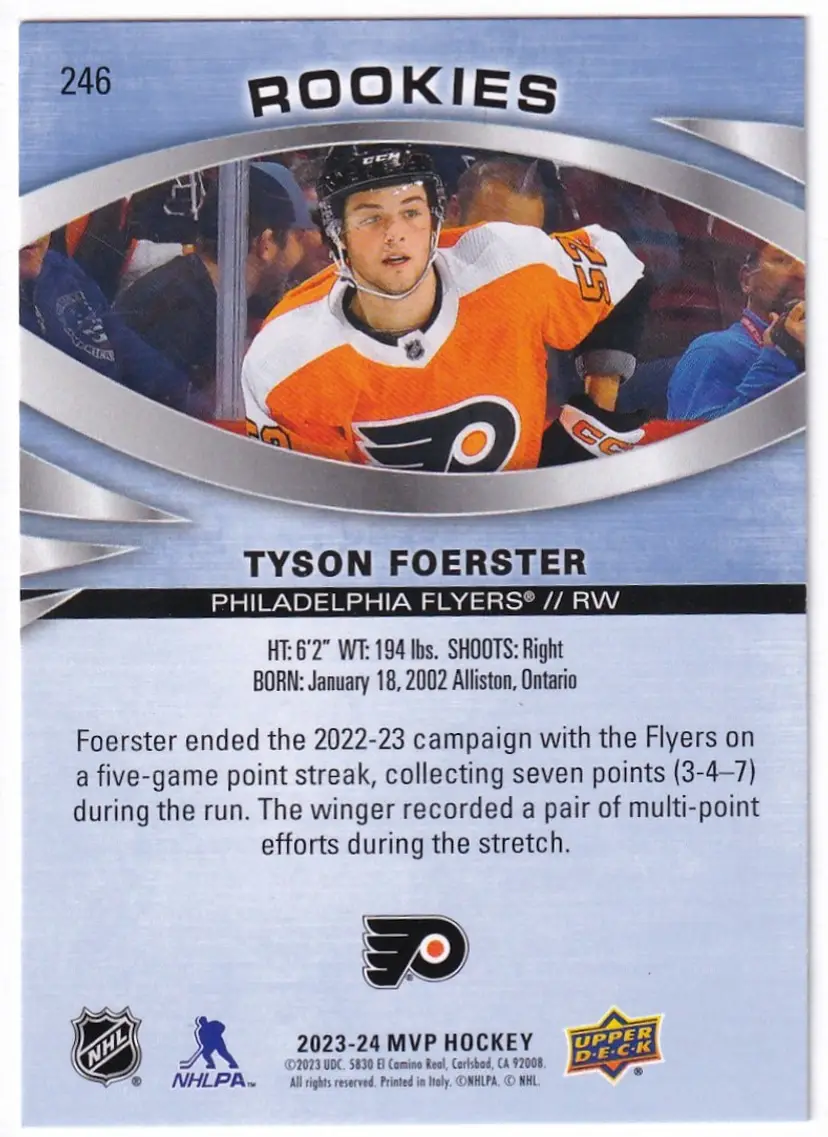 2023-24 Upper Deck MVP #246 Tyson Foerster SP RC Philadelphia Flyers