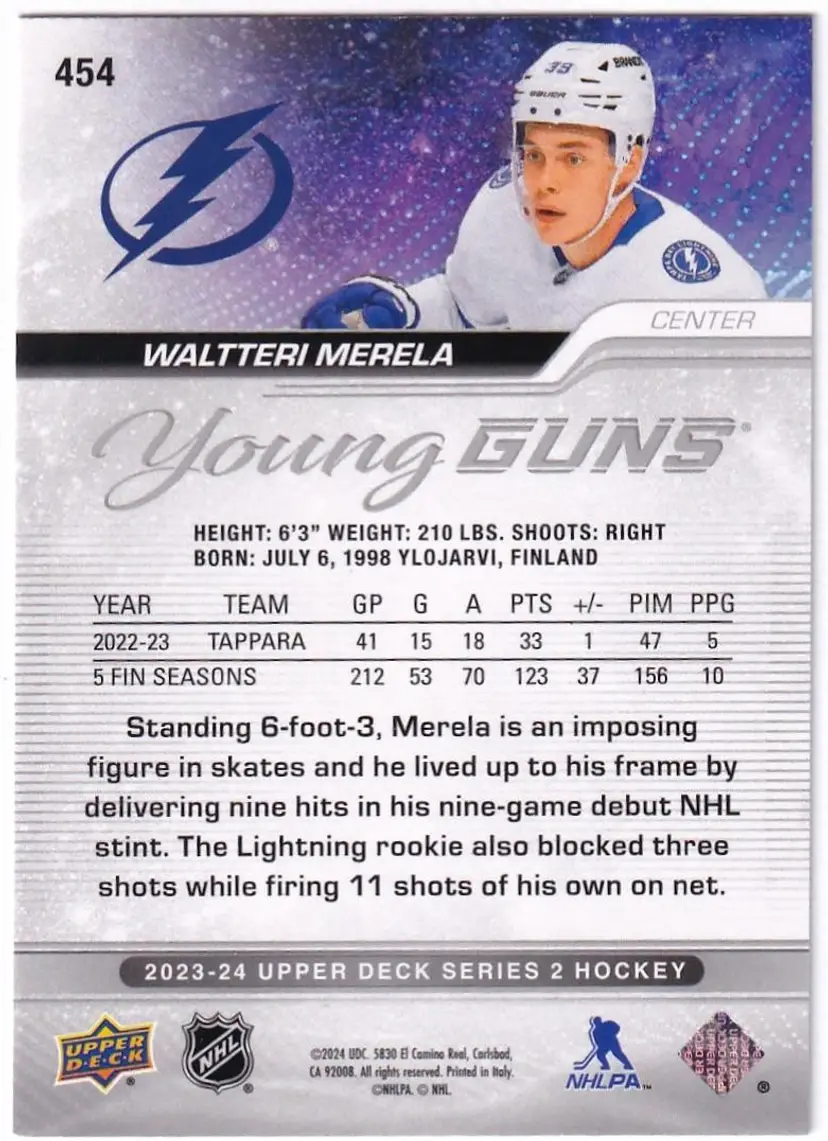 2023-24 Upper Deck Outburst Silver #454 Waltteri Merela YG Tampa Bay Lightning