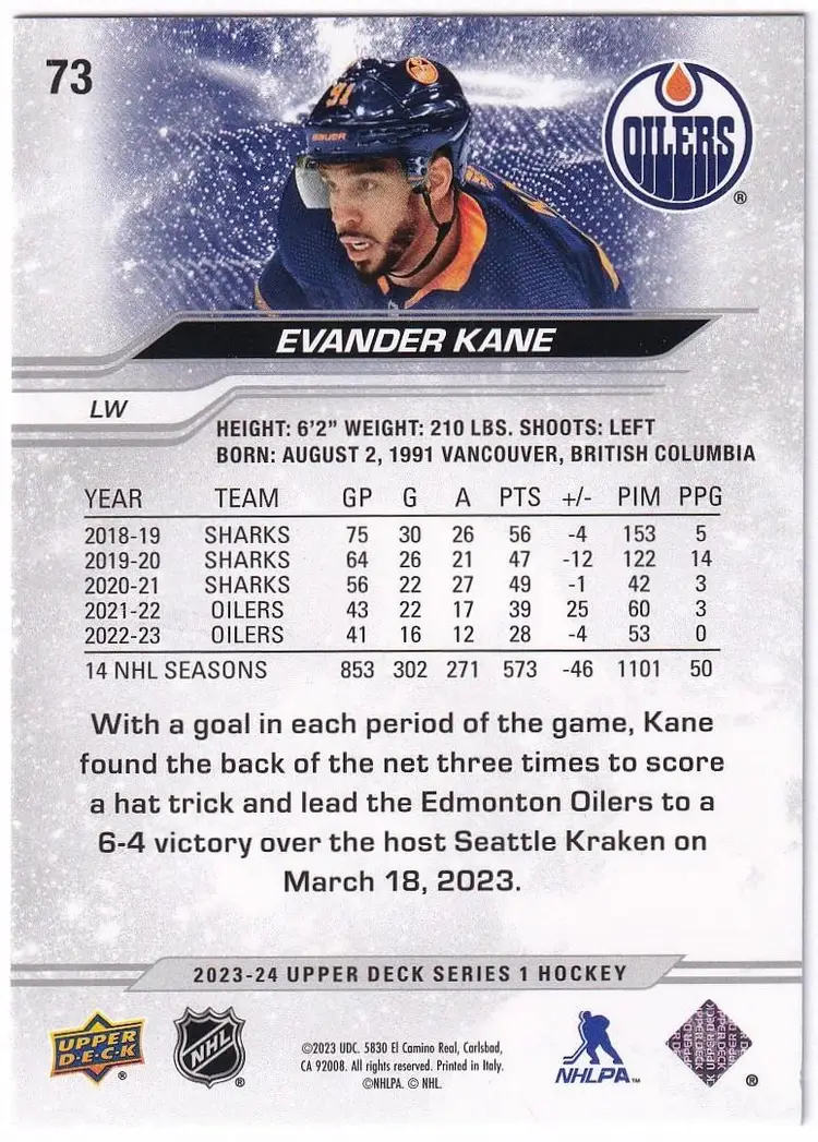 2023-24 Upper Deck Outburst Silver #73 Evander Kane Edmonton Oilers