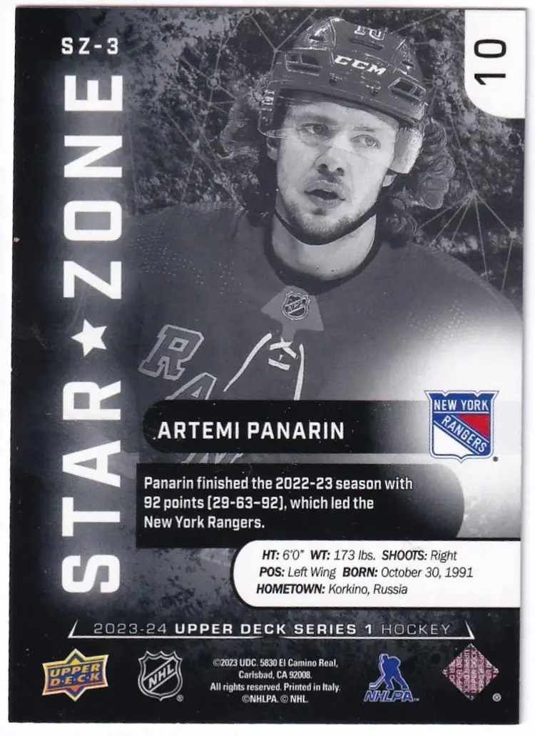 2023-24 Upper Deck Star Zone #SZ3 Artemi Panarin New York Rangers