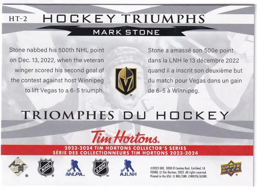 2023-24 Upper Deck Tim Hortons Hockey Triumphs #HT2 Mark Stone Vegas Golden Knights