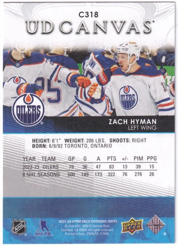 2023-24 Upper Deck UD Canvas #C318 Zach Hyman Edmonton Oilers
