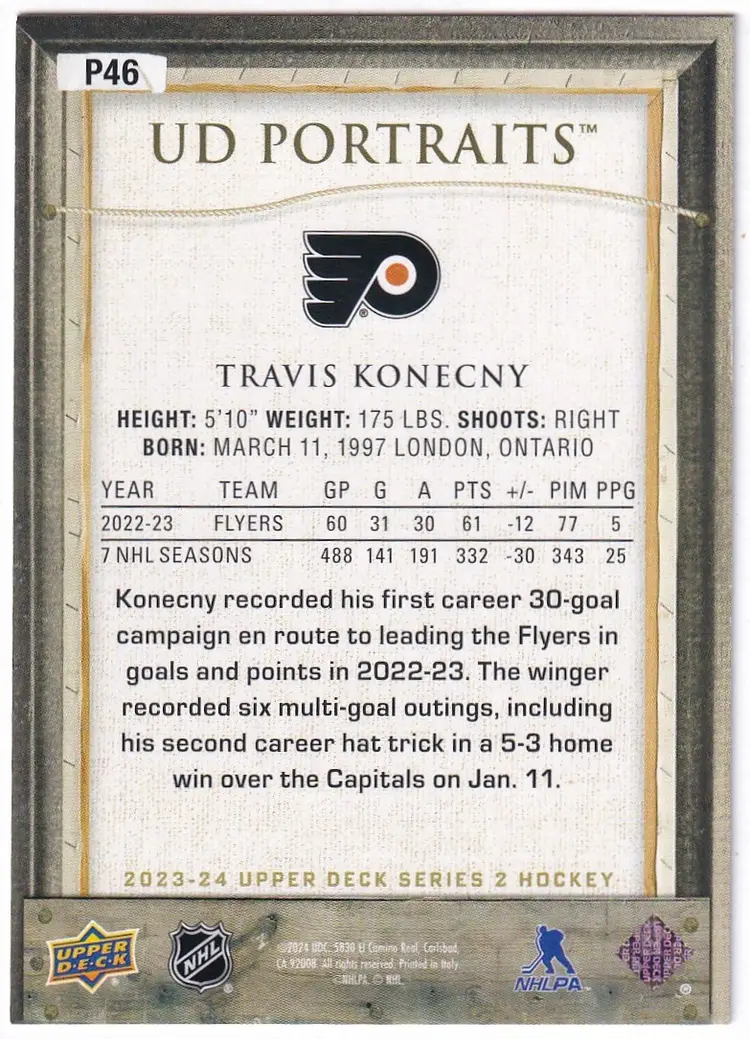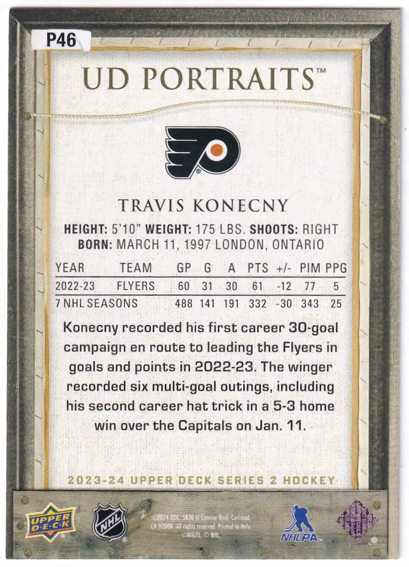 2023-24 Upper Deck UD Portraits #P46 Travis Konecny Philadelphia Flyers