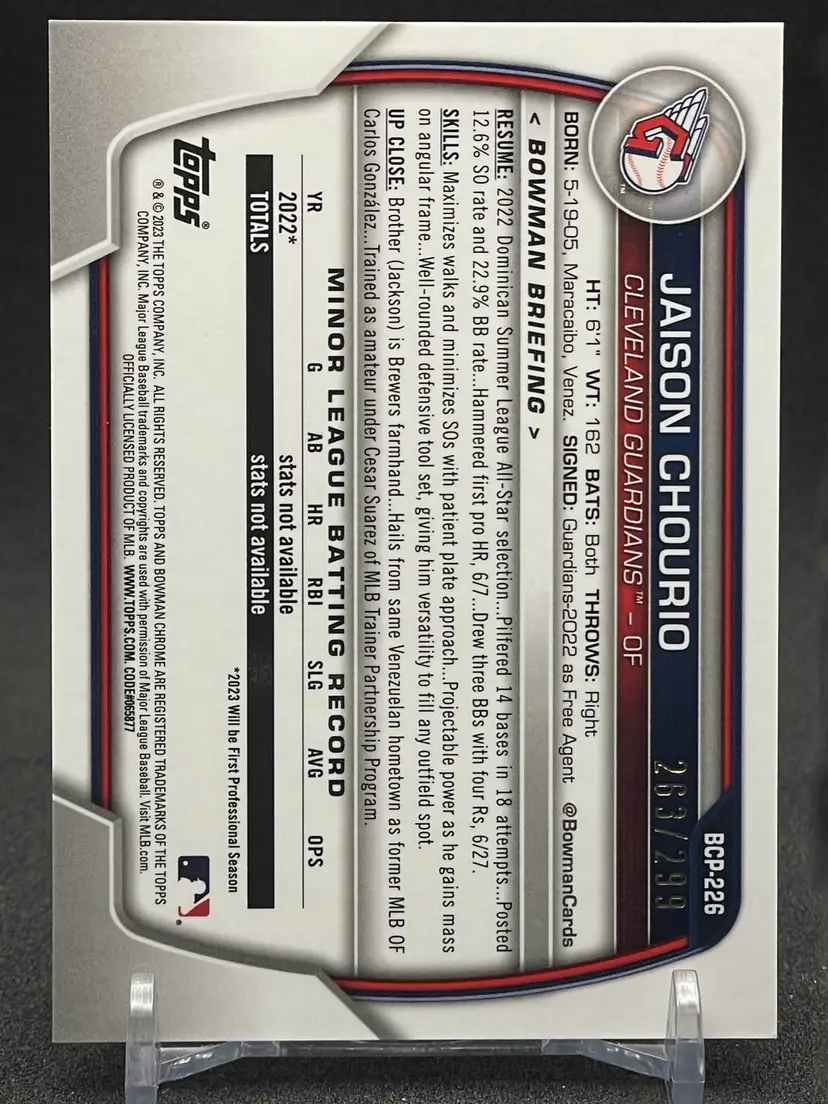 Item Description: 2023 Bowman Chrome Prospects - Jaison Chourio #BCP-226 Speckle Refractor /299