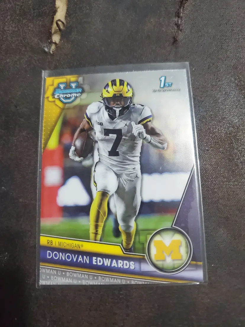 Snag this Bowman Chrome card featuring Donovan Edwards in his Michigan gear. A must-have for college football card enthusiasts!