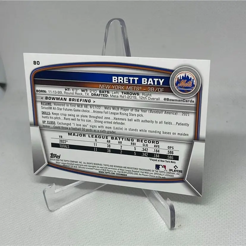 2023 Bowman Rookie Brett Baty New York Mets