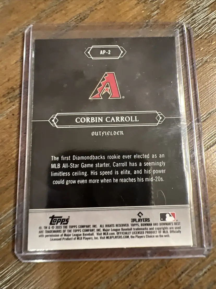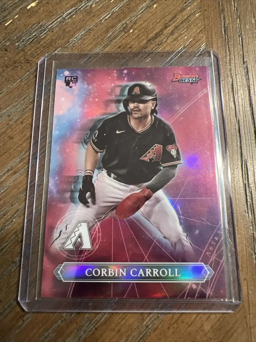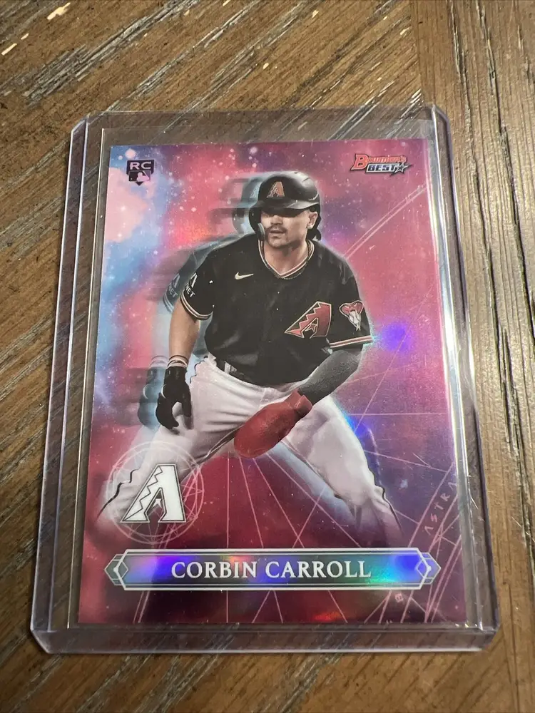 Card Size: Standard Autographed: No League: Major League (MLB) Set: 2023 Bowman Draft Year Manufactured: 2023 Player/Athlete: Corbin Carroll Original/Licensed Reprint: Original Type: Sports Trading Card Sport: Baseball Parallel/Variety: Refractor Manufacturer: Bowman Features: Rookie Team: Arizona Diamondbacks Season: 2023 Country/Region of Manufacture: United States