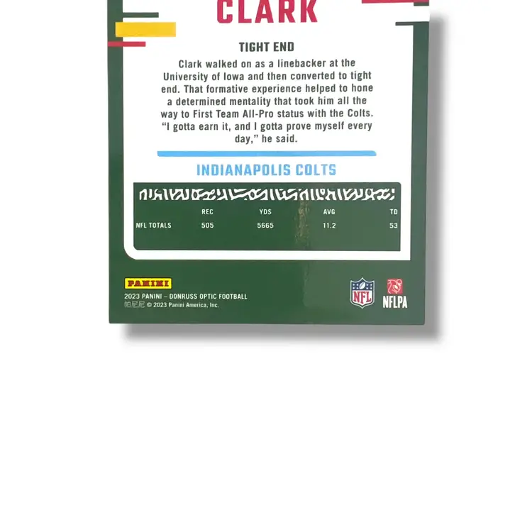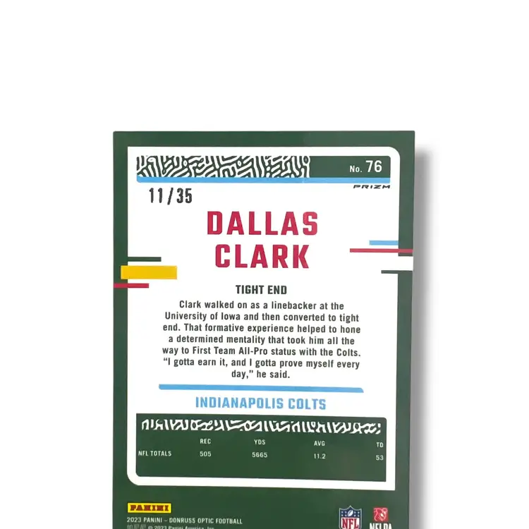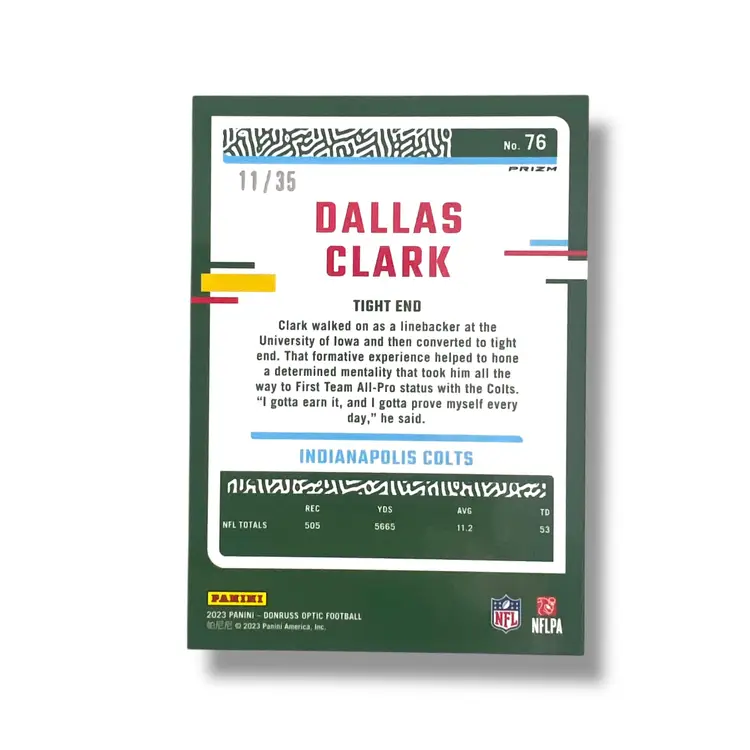 Here We Have a 2023 Donruss Optic Dallas Clark Bronze Mojo 11/35 Indianapolis Colts #76