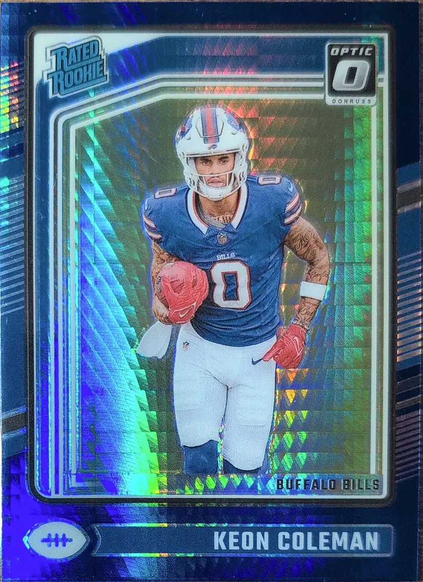 Snag this 2023 Donruss Optic Rated Rookie card featuring Keon Coleman from the Buffalo Bills. A must-have for any NFL card collector.