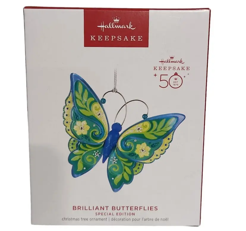 The 2023 Brilliant Butterflies Special Limited-Edition ornament celebrates Hallmark Keepsake ornaments golden anniversary. This Halmark beautiful butterfly Christmas ornament can be displayed and enjoyed year-round. The Brilliant Butterfly Hallmark series has endless decorating possibilities. Each Hallmark butterfly features beautiful colors and detail. • LIMITED EDITION REPAINT of the 2017 #1 Brilliant Butterflies • Artist Edythe Kegrize • Size Approx 4.3" W x 4.4" H x 0.6" D • Hallmark Keepsake Ornament New in Original Box.