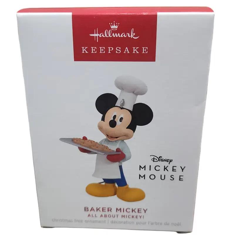 Learn all about Mickey with this Christmas tree ornament series that features Mickey Mouse celebrating a different occupation or hobby each year. This year, Mickey shows off his skills in the kitchen as he dons his toque, apron and oven mitts, holding a tray of freshly baked chocolate chip cookies.