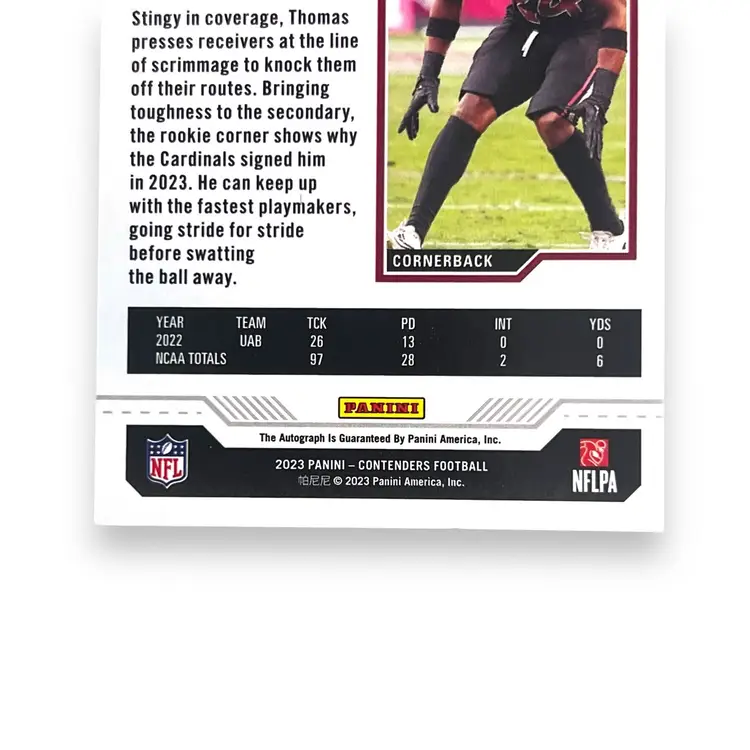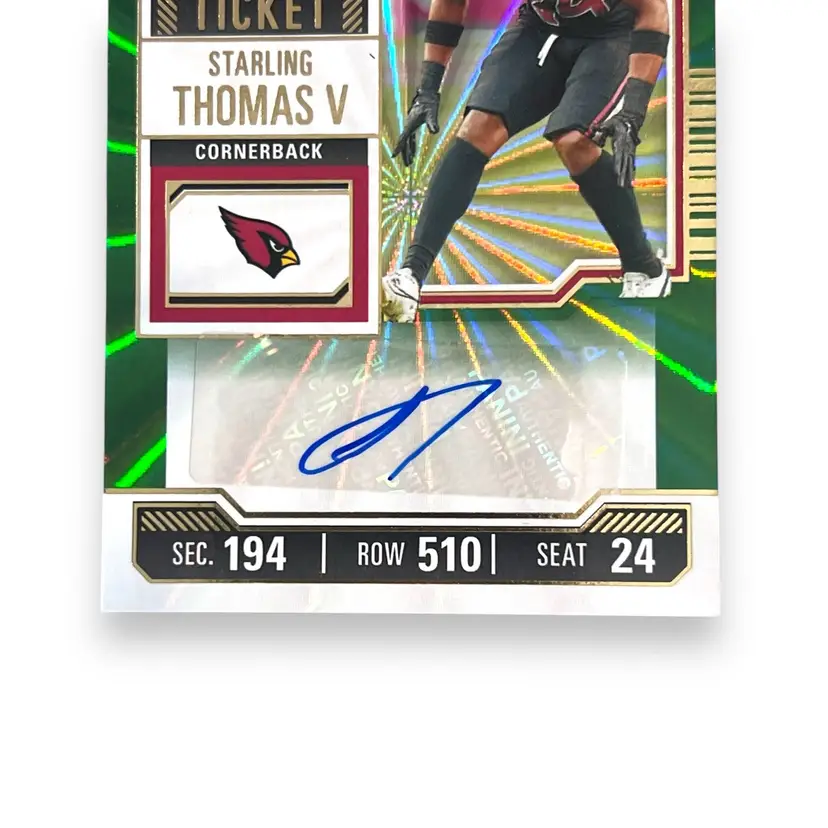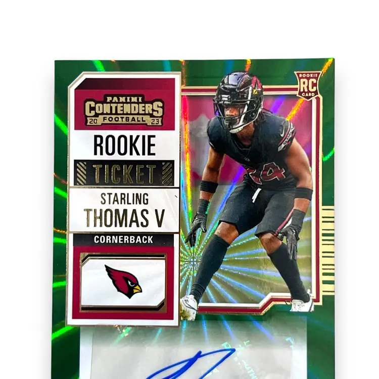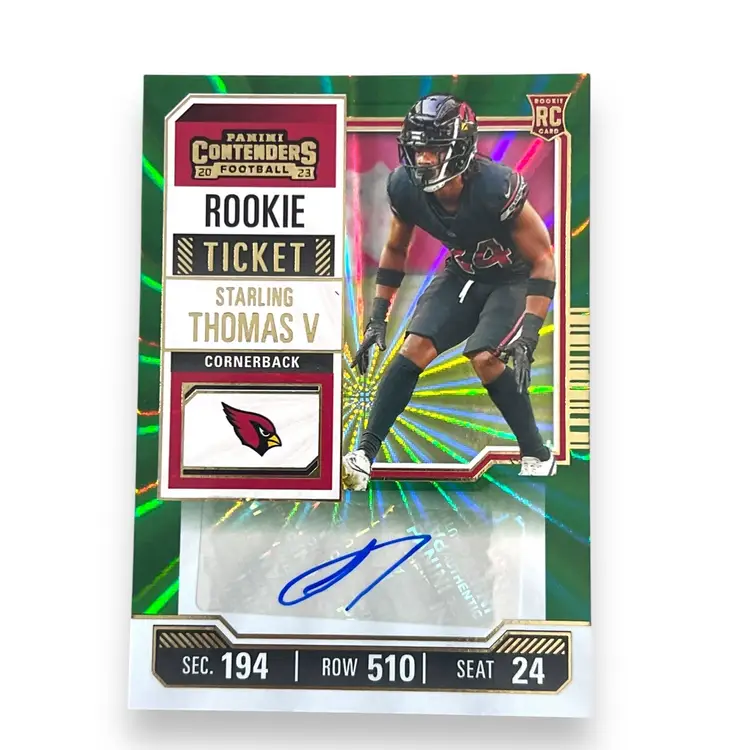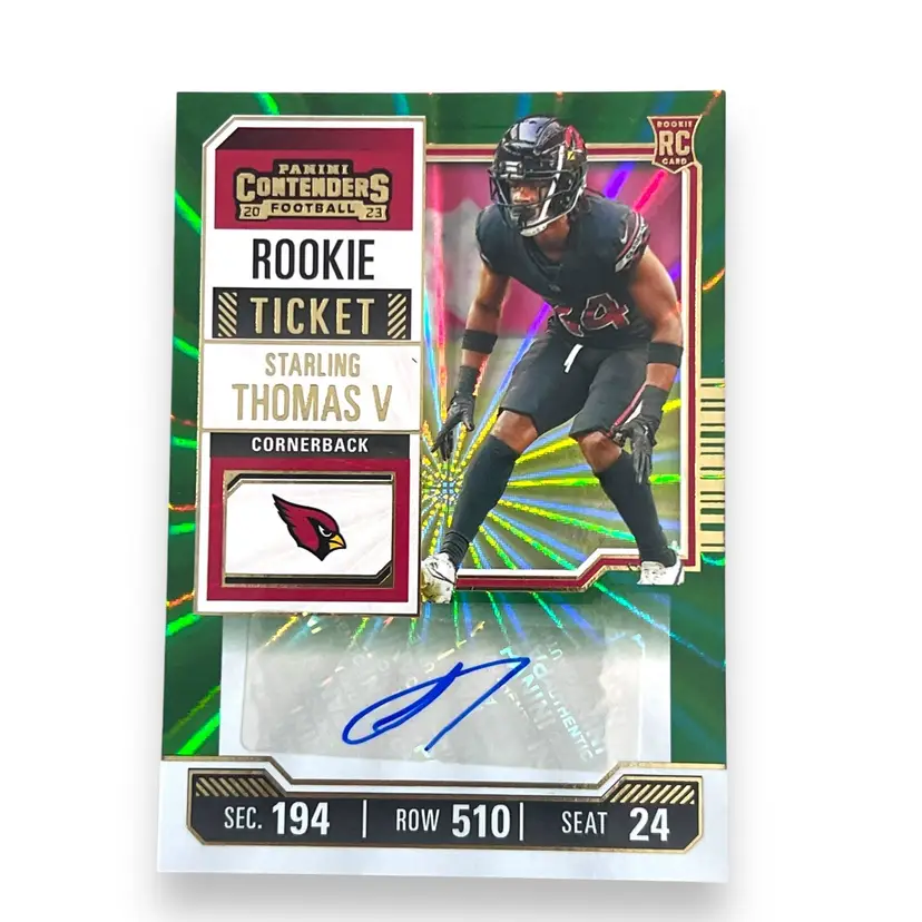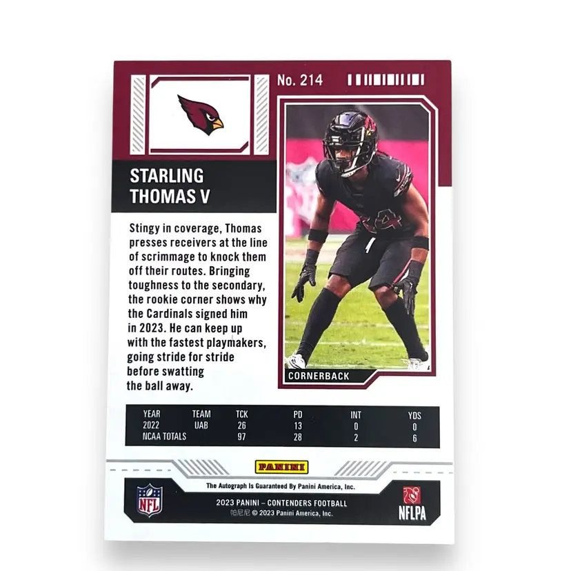 Here We Have a 2023 Panini Contenders Starling Thomas V RC Opening Kickoff Rookie Ticket Auto