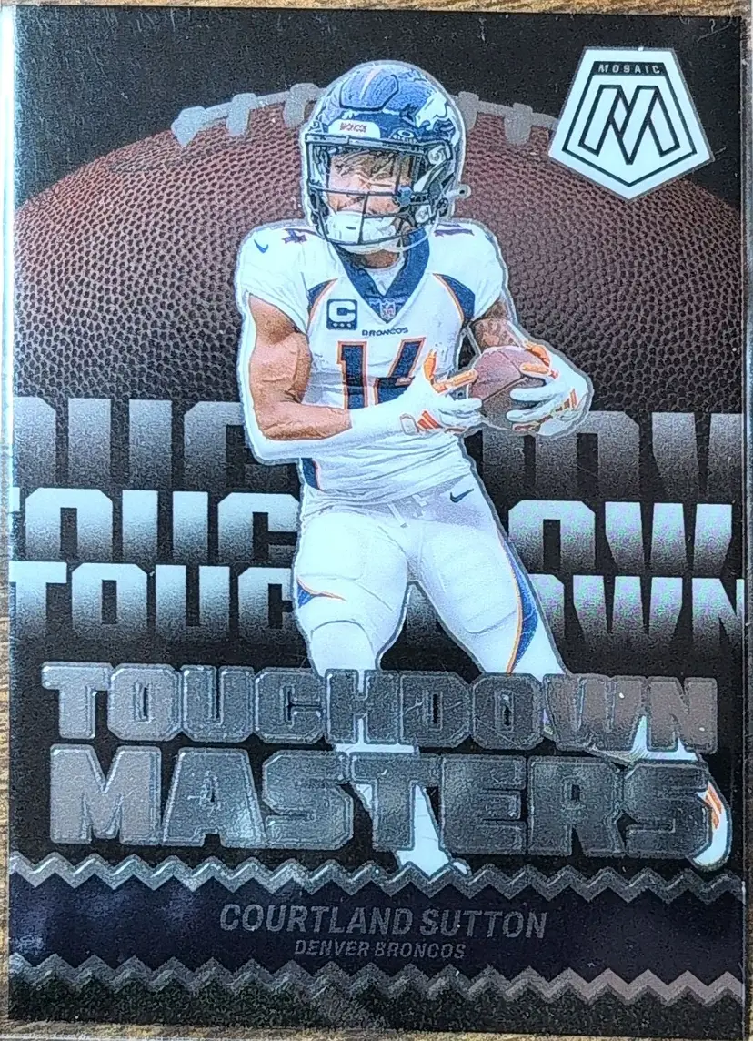 Score big with this 2023 Panini Mosaic Touchdown Masters card featuring Courtland Sutton from the Denver Broncos. A must-have for any NFL card collector.