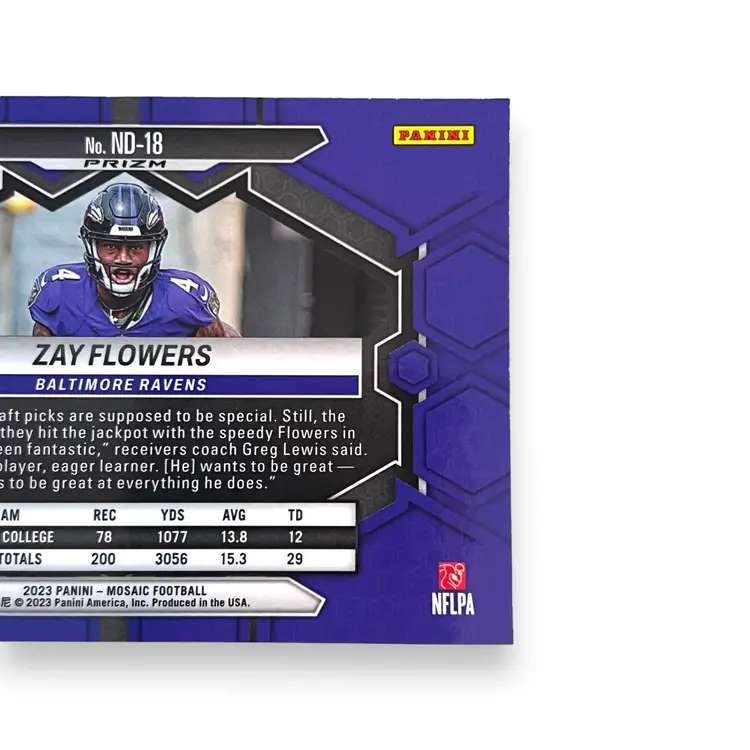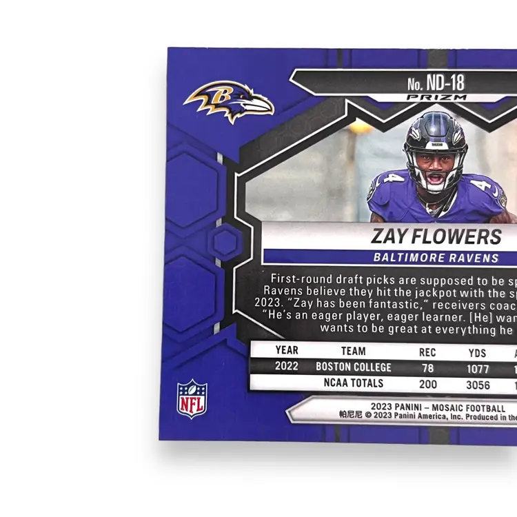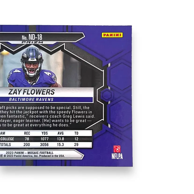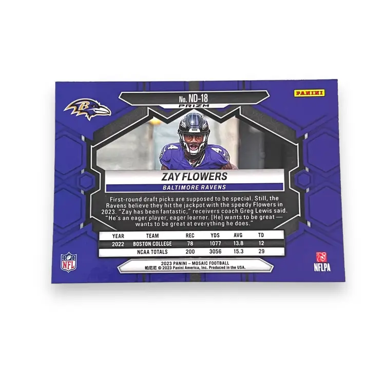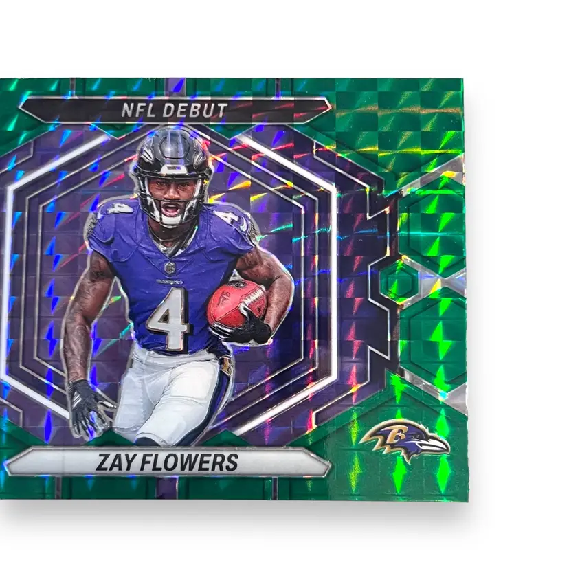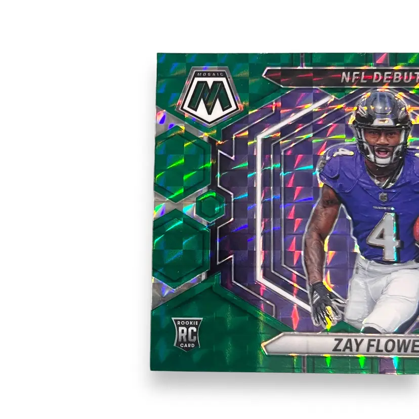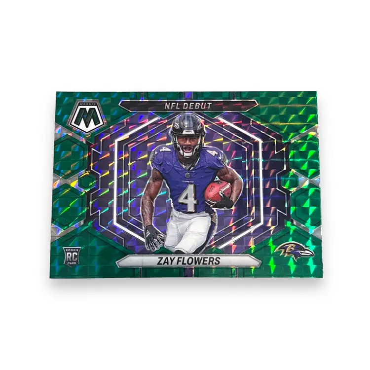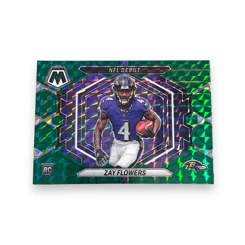 Here We Have a 2023 Panini Mosaic Zay Flowers RC Green Prizm NFL Debut Baltimore Ravens