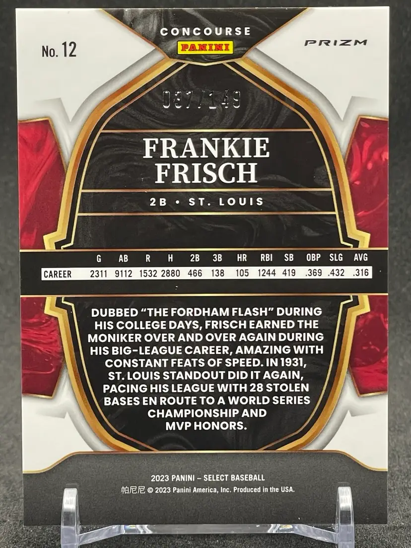 Item Description: 2023 Panini Select - Concourse Frankie Frisch #12 White Prizm /149