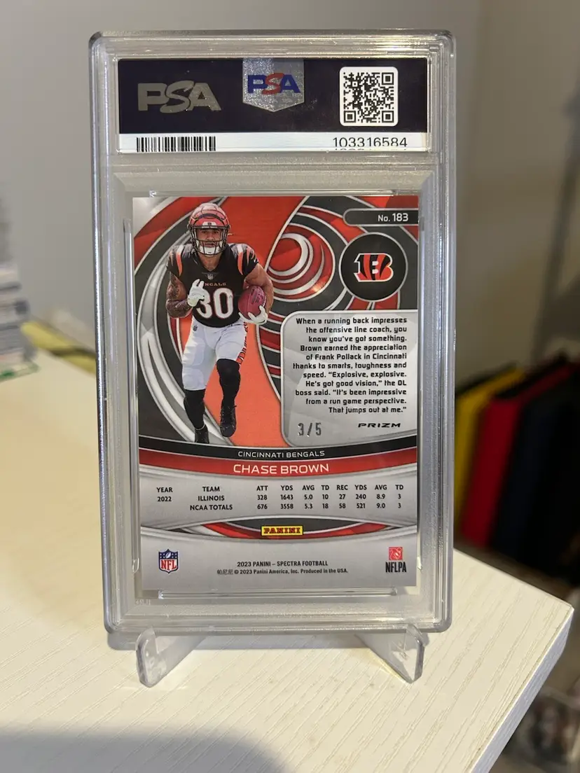 2023 Panini Spectra Chase Brown Rookie Psychedelic /5 PSA 8 Card No. 183