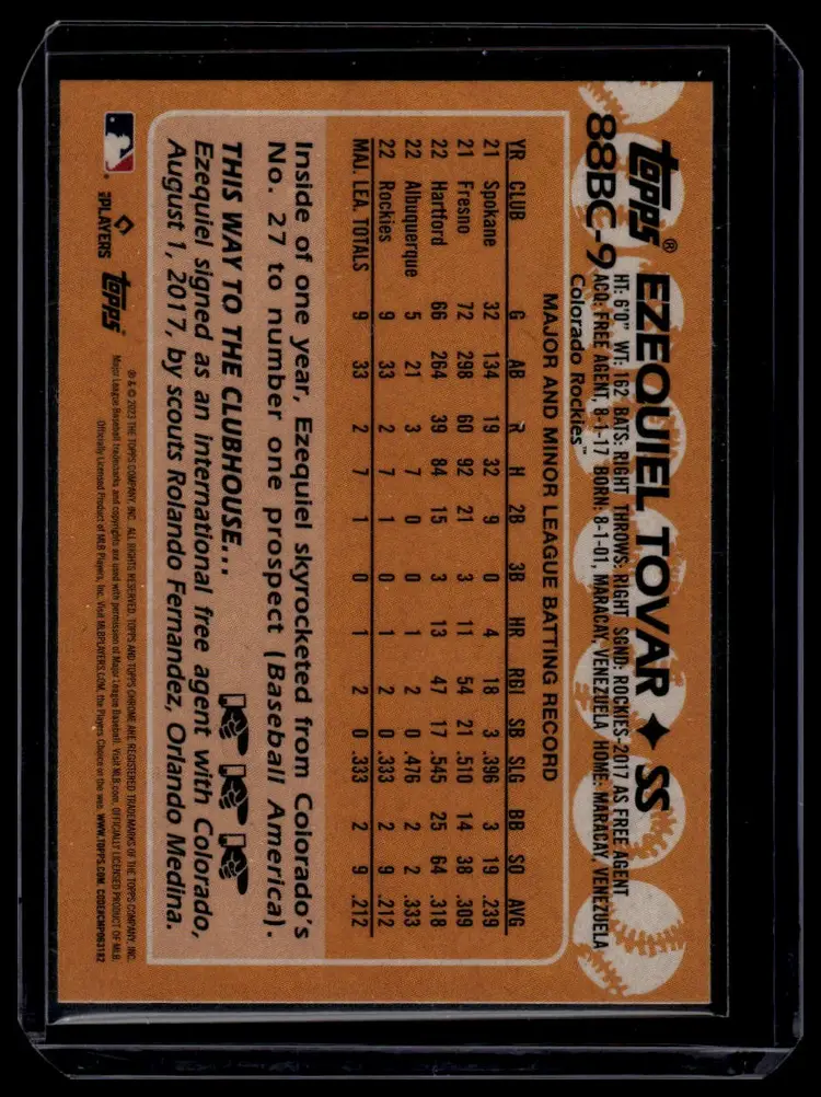 2023 Topps Chrome #88BC-9 Ezequiel Tovar 1988 Topps Baseball 35th Anniversary Colorado Rockies