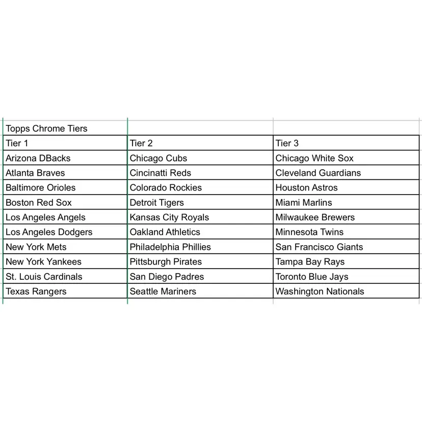 You get 1 team from each tier (3 total). Teams are assigned live before we rip. Free shipping. All cards ship.