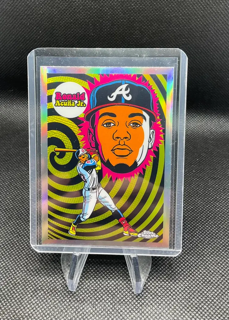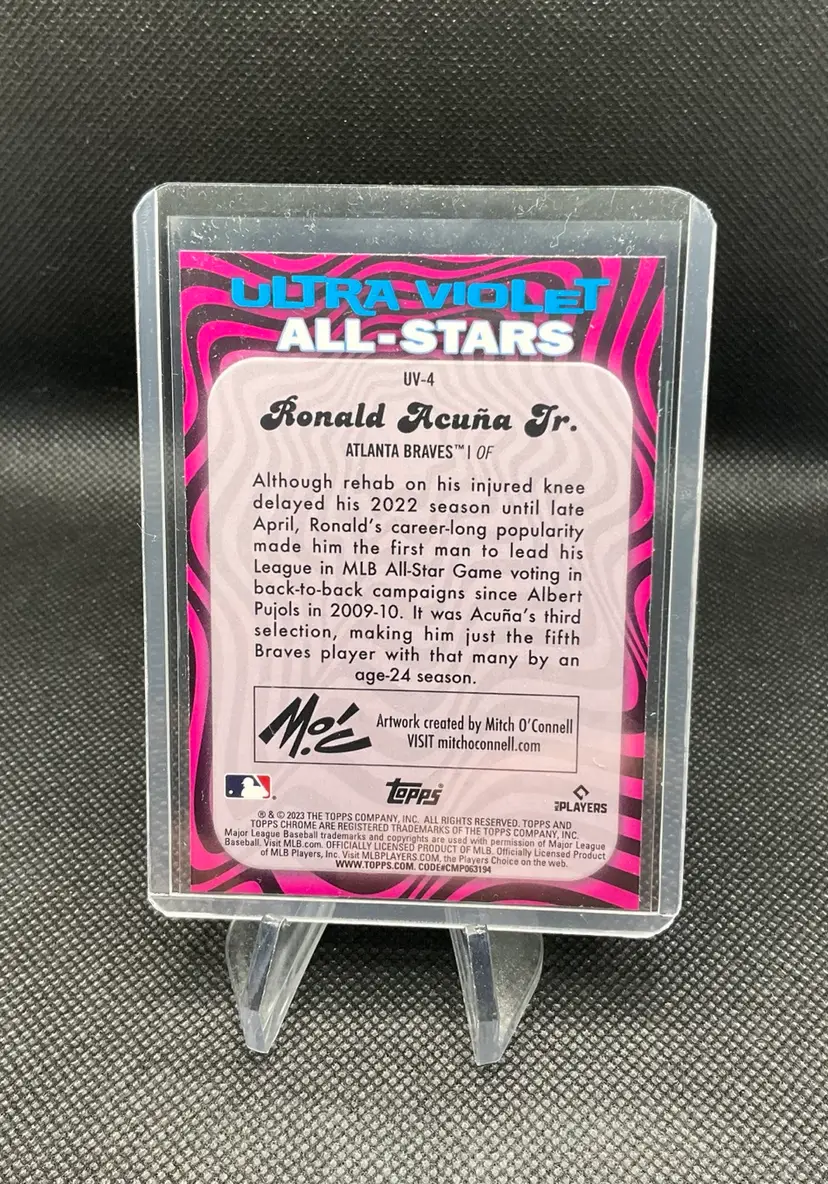 Sharp 2023 Topps Chrome Ultra Violet All-Stars SSP Ronald Acuna Jr. Card #UV-4. Will ship in sleeve at toploader. Shipped BMWT.