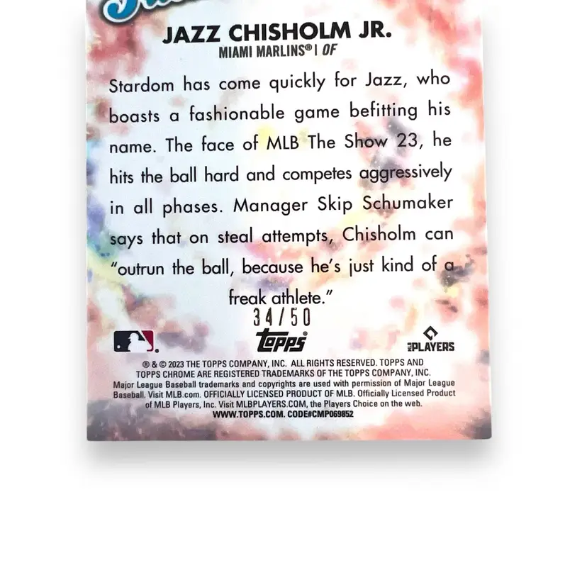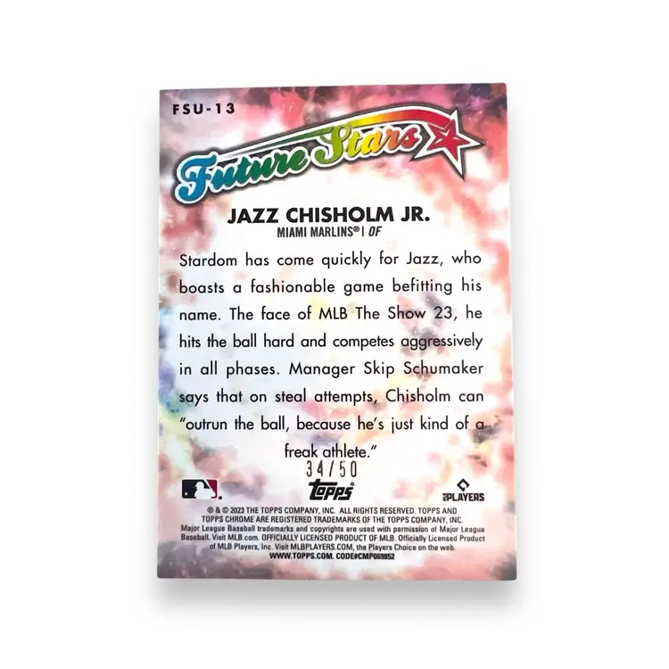 Here We Have a 2023 Topps Chrome Update Jazz Chisholm Future Stars Gold 34/50 New York Yankees