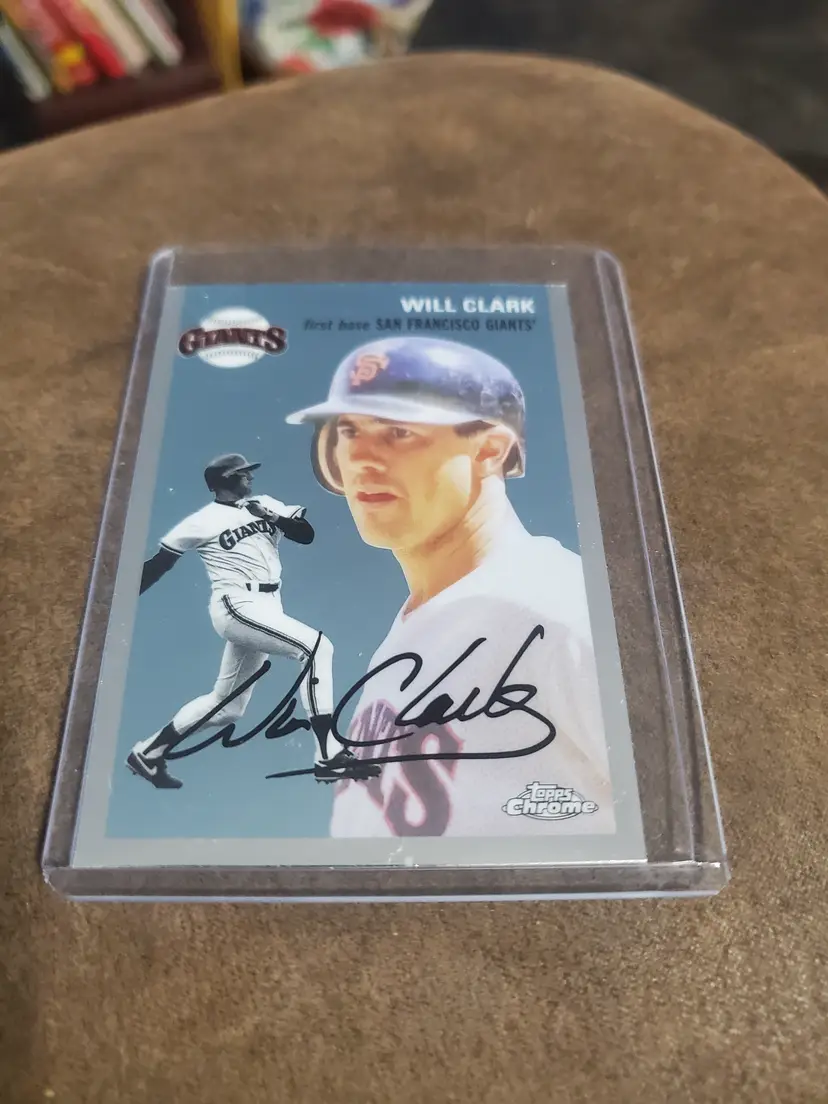 Check out this Topps Chrome card featuring Will Clark in his San Francisco Giants gear, complete with an autograph. A great addition for baseball card collectors!